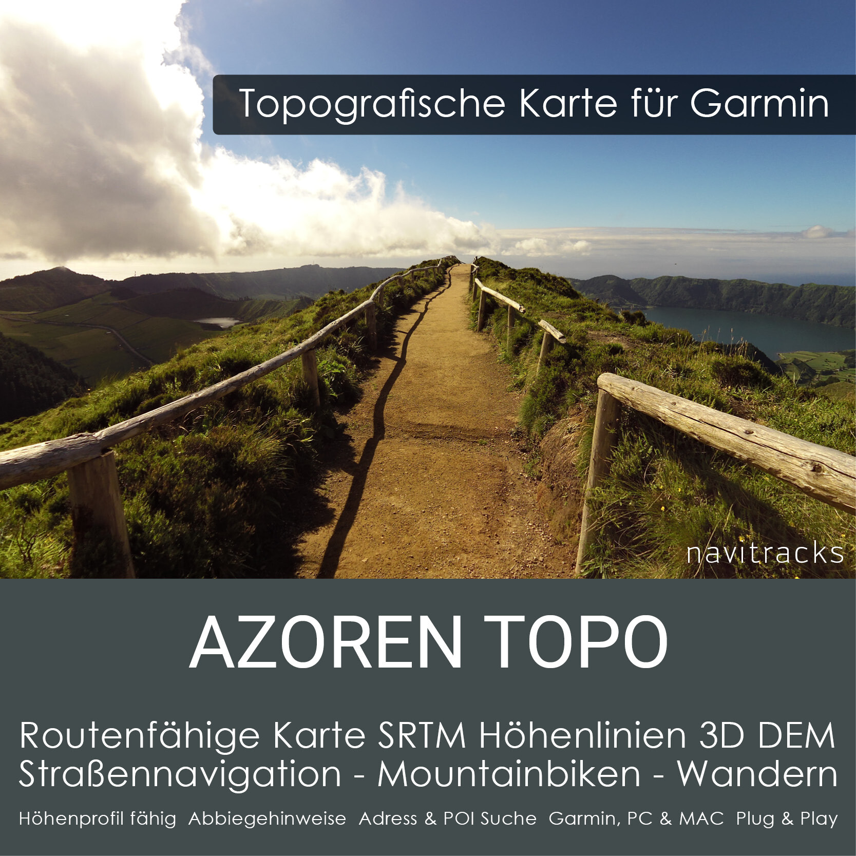 Topo Karte Azoren für Garmin – Routingfähige GPS Navigationskarte (Europa)