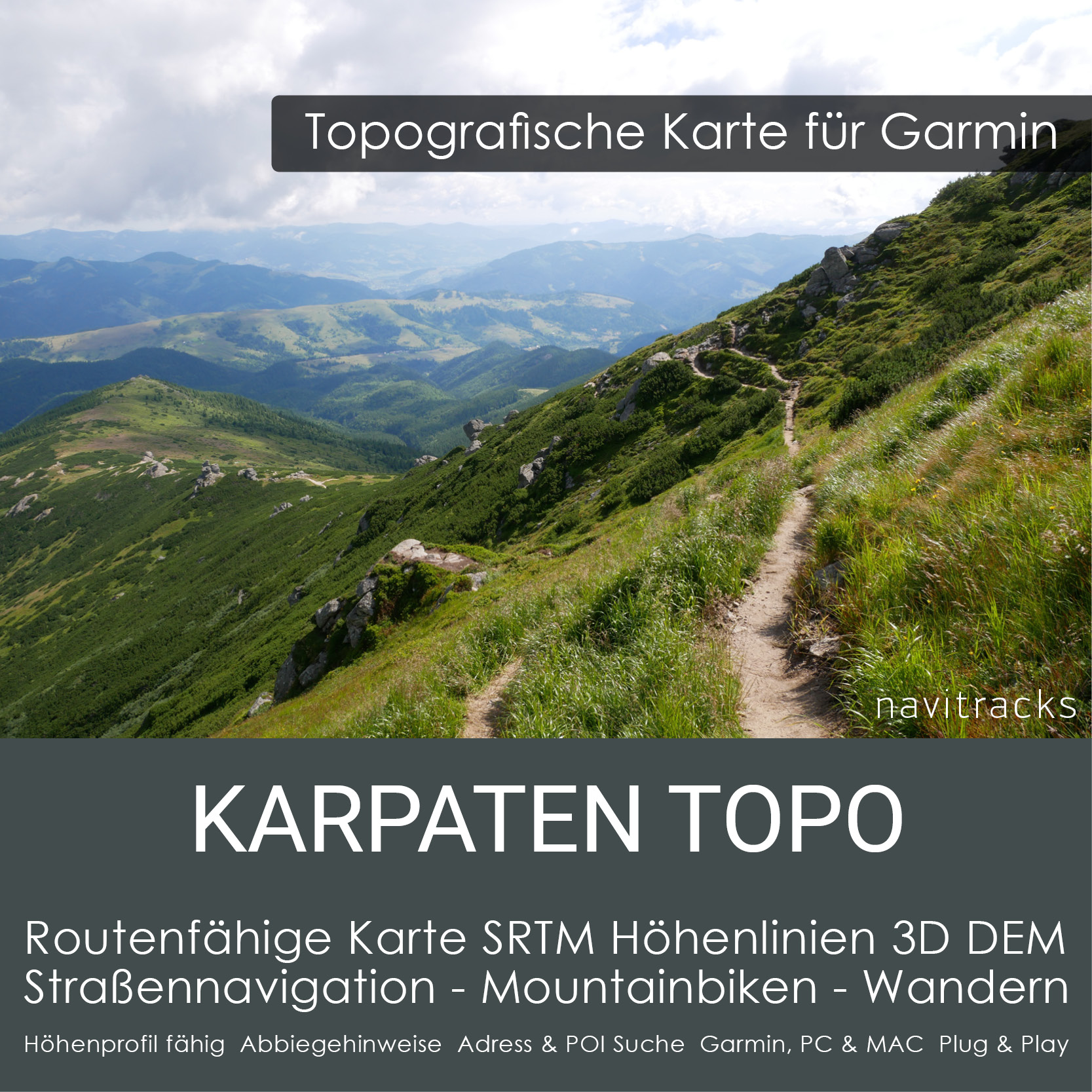 Topo Karte Karpaten für Garmin – Routingfähige GPS Navigationskarte (Europa)