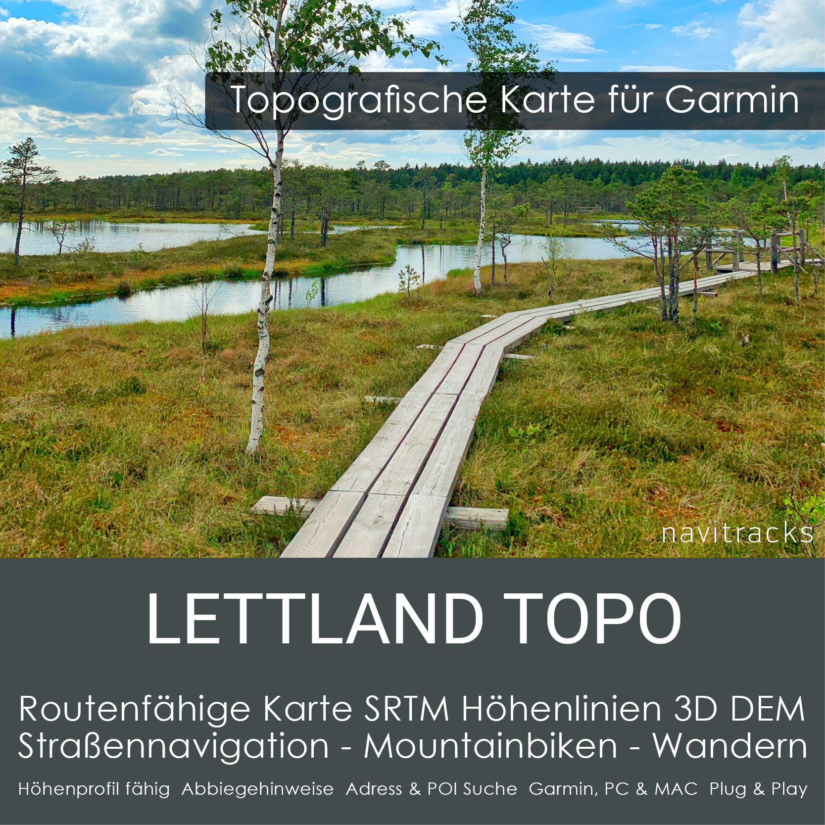 Topo Karte Lettland für Garmin – Routingfähige GPS Navigationskarte (Europa)